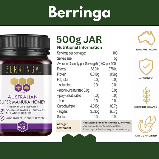 Berringa Super Manuka Honey MGO 900+ 500g – Pure & CertifiedVendor:iSage HealthRegular price $185.00 AUDRegular priceUnit price / per-