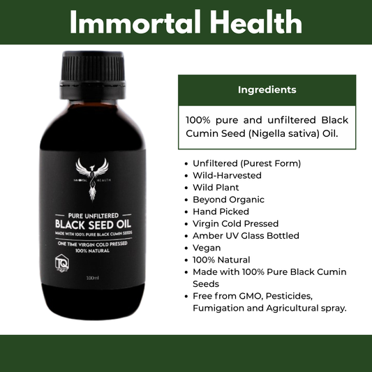 Immortal Health Pure Unfiltered Black Seed Oil – 100mlVendor:iSage HealthRegular price $34.95 AUDRegular priceUnit price / per-